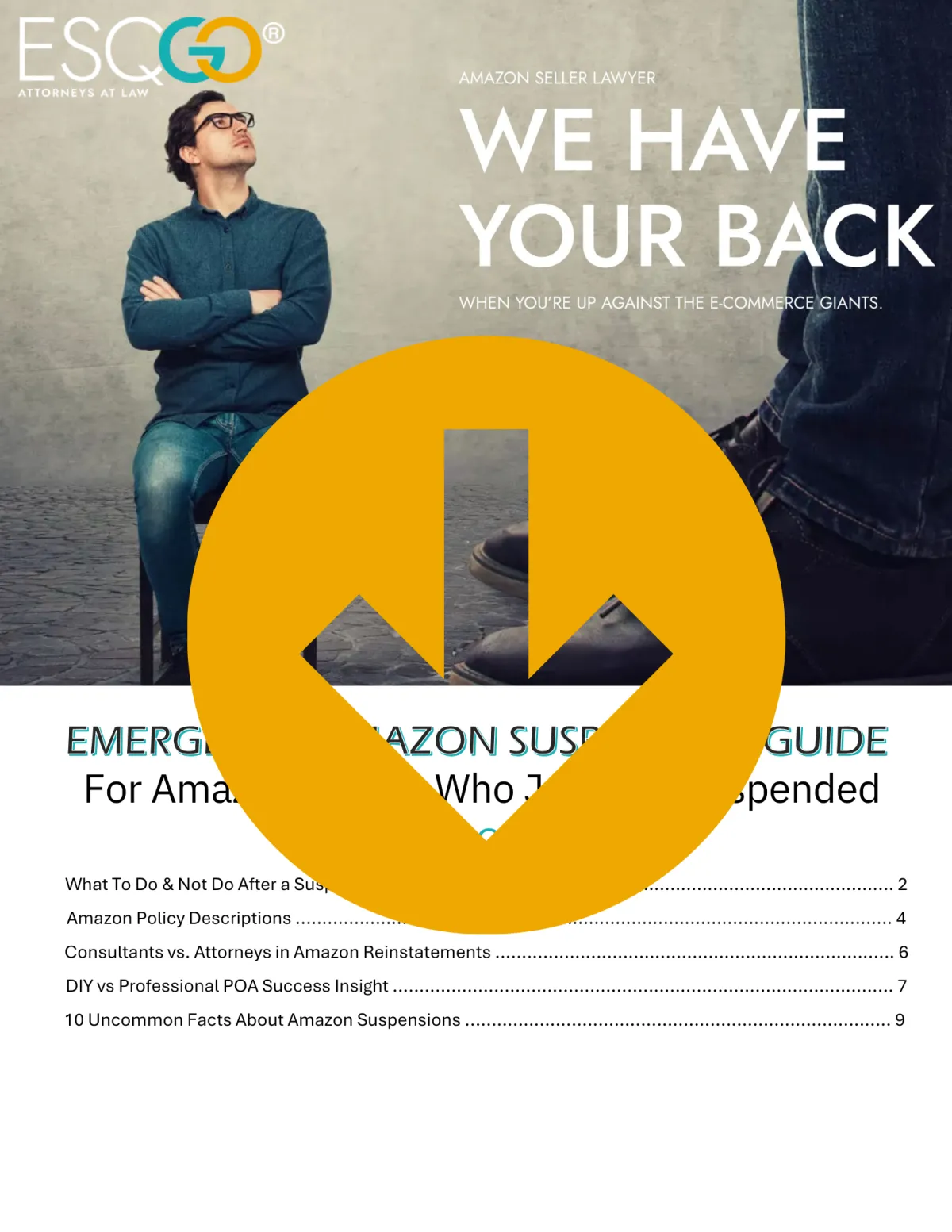 ESQgo®, PC is an intellectual property law firm founded by a lawyer and former $1,000,000+ Amazon seller. We guide online business owners through Amazon account and ASIN reinstatements, listing hijacker removal, intellectual property complaints and appeals, and many other issues and concerns. As a modern Amazon seller law firm, our mission is to focus not only on your immediate legal matter but also on your future goals and potential as an e-commerce business.